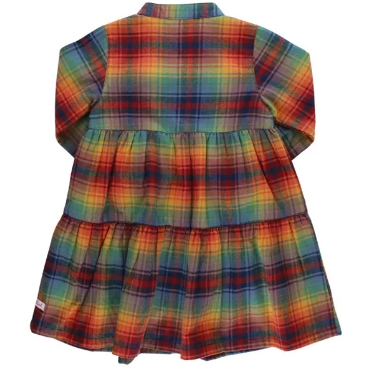 Storybook Rainbow Plaid Ruffle Henley Tiered Dress, from Ruffle Butts.