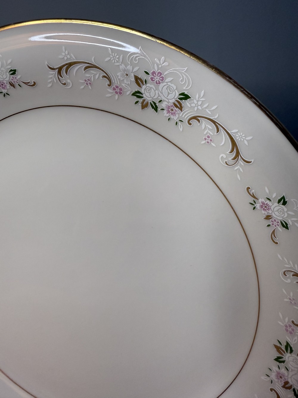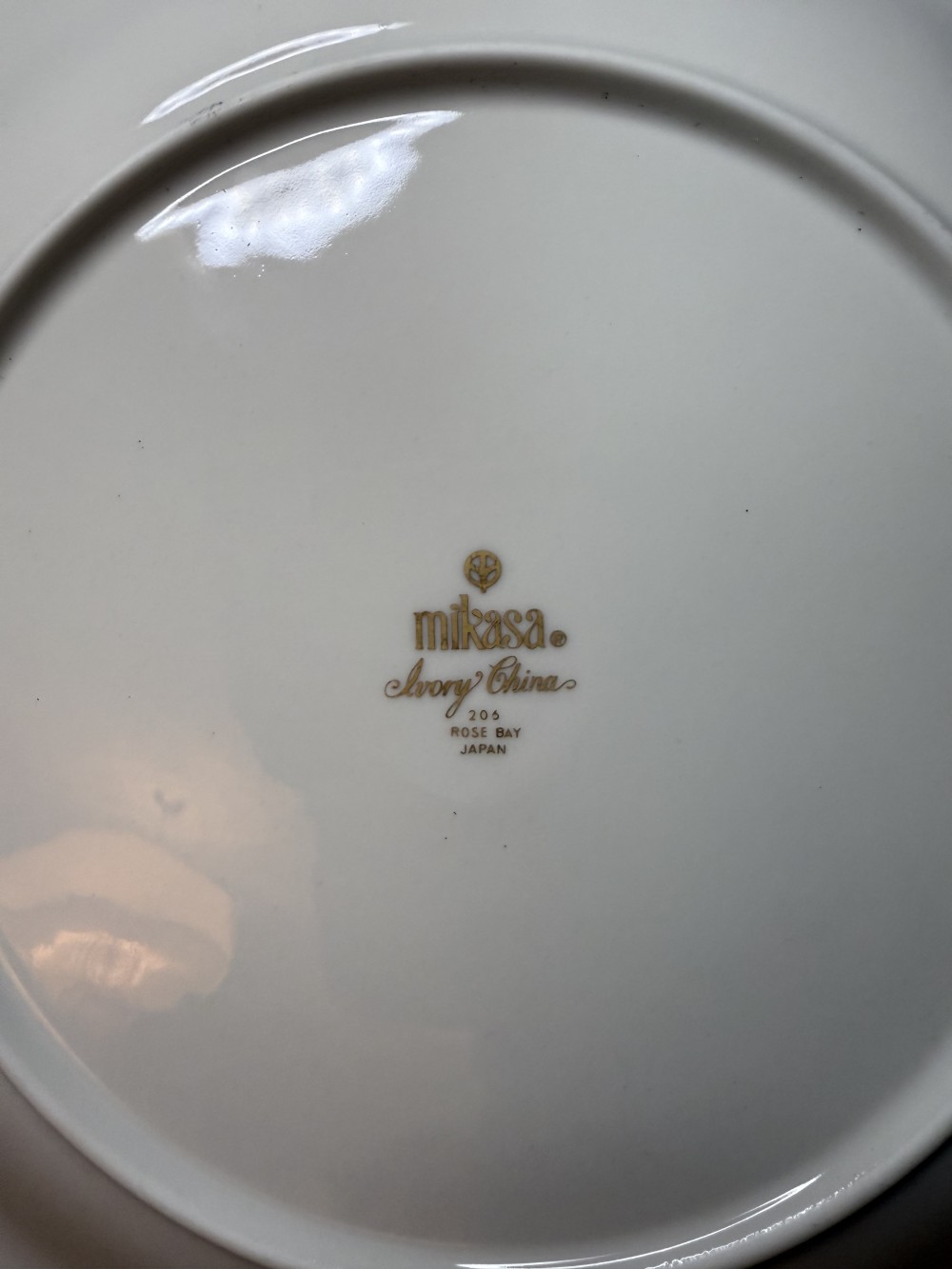Rose Bay by Mikasa dinner plate. Creamy white with pink, green, white, and gold. Mint condition.
