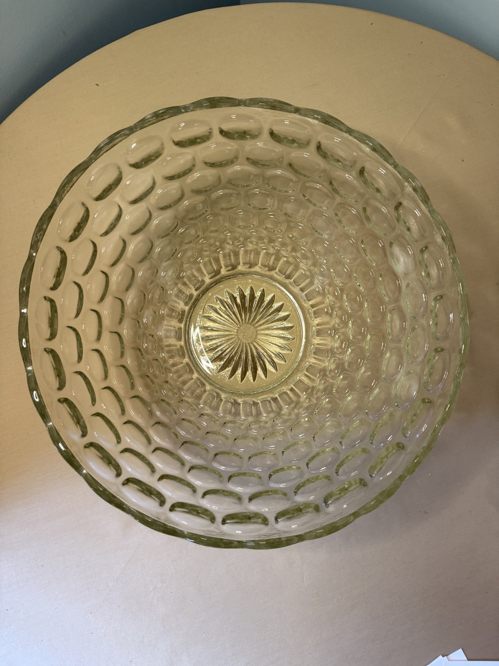 Federal Glass thumbprint punch bowl. Measures 11.75" in diameter, 6.5" tall.
