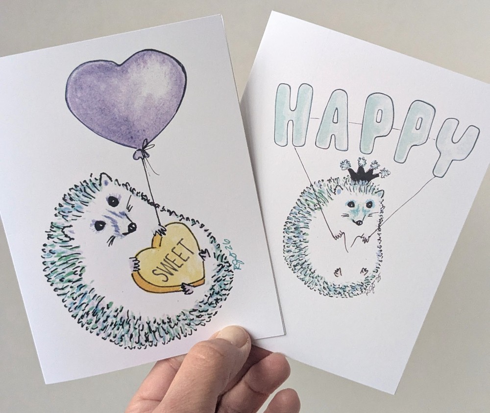 Love Sweet Hedgehog Greeting CardFolded 4.25 x 5.5 100 lb card with A2 envelope. Cello Sleeve