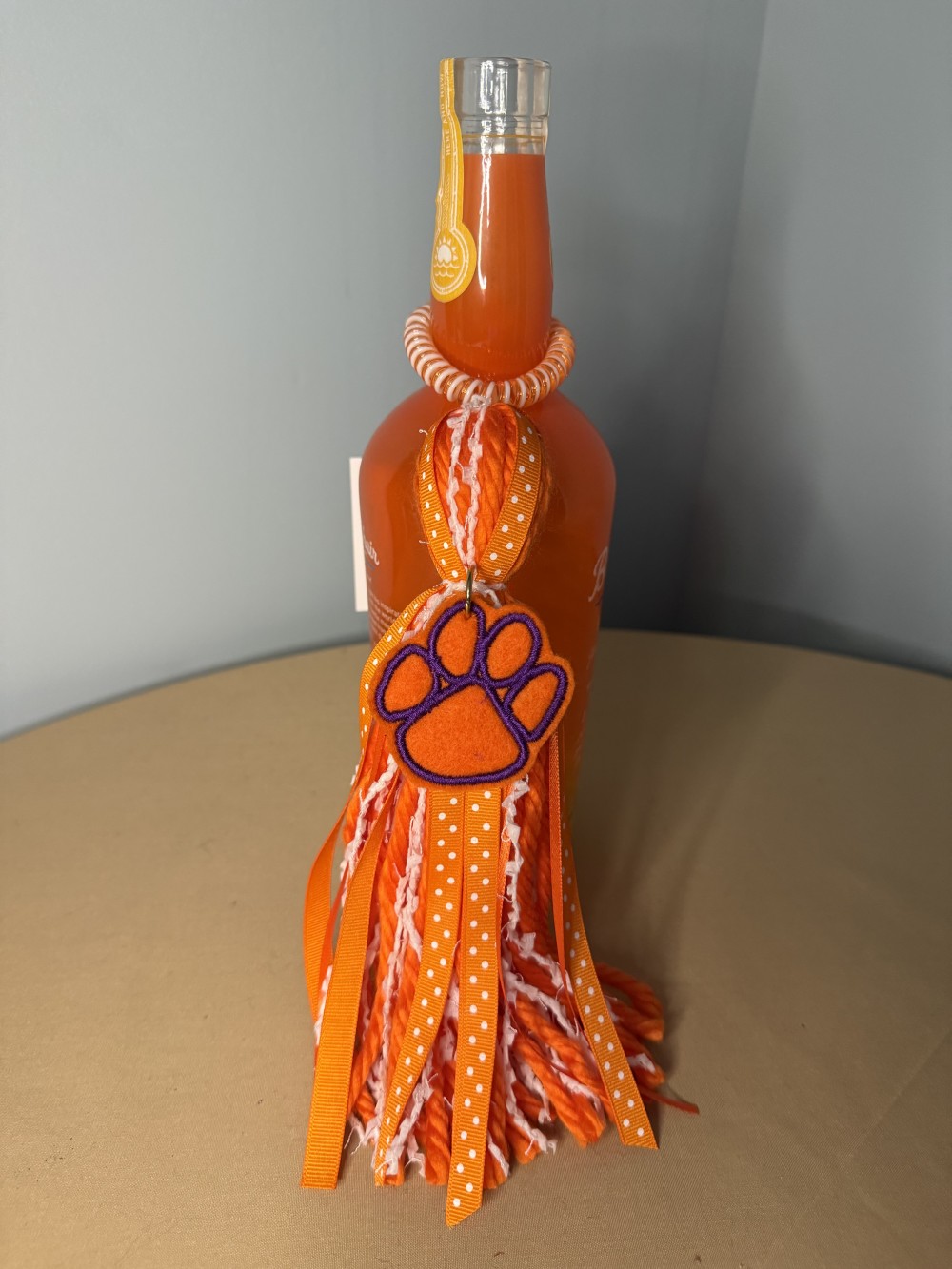 Clemson multi ribbon and yarn tassel. Perfect for a hostess gift or tailgate decor!