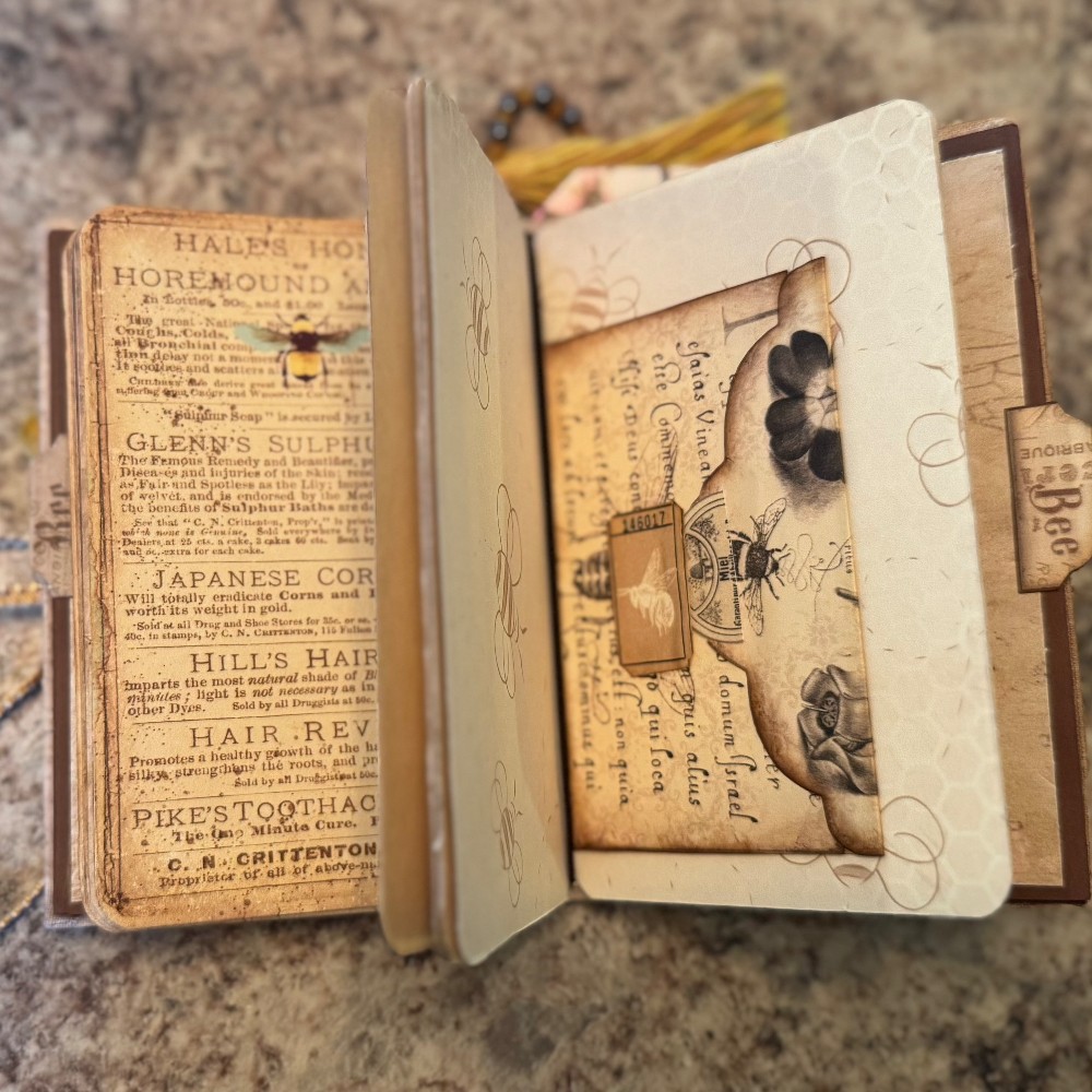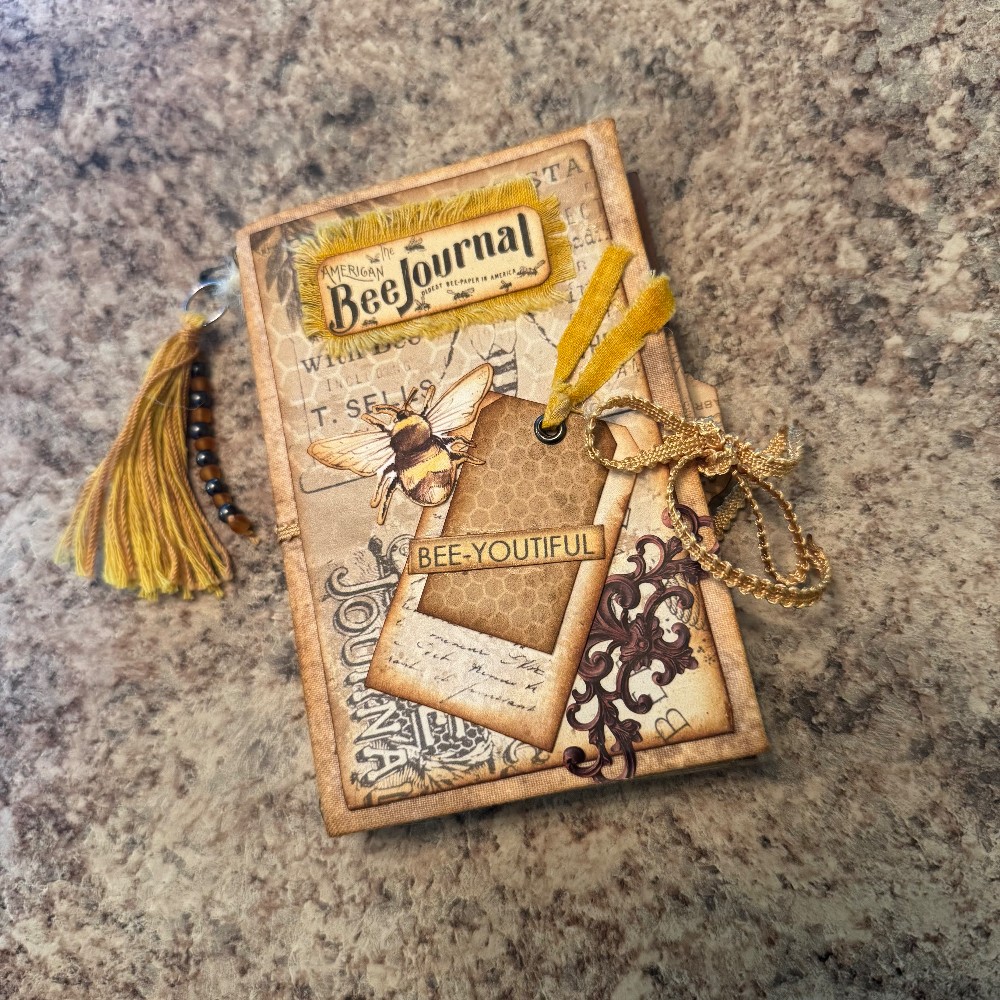 This sweet little pocket journal has 60 adorable writing pages with 2 hidden envelopes to store your treasures. Removable signatures and pull put spaces for photos or keepsakes. Great for your purse or a sweet gift for someone BEE-YOUtiful.