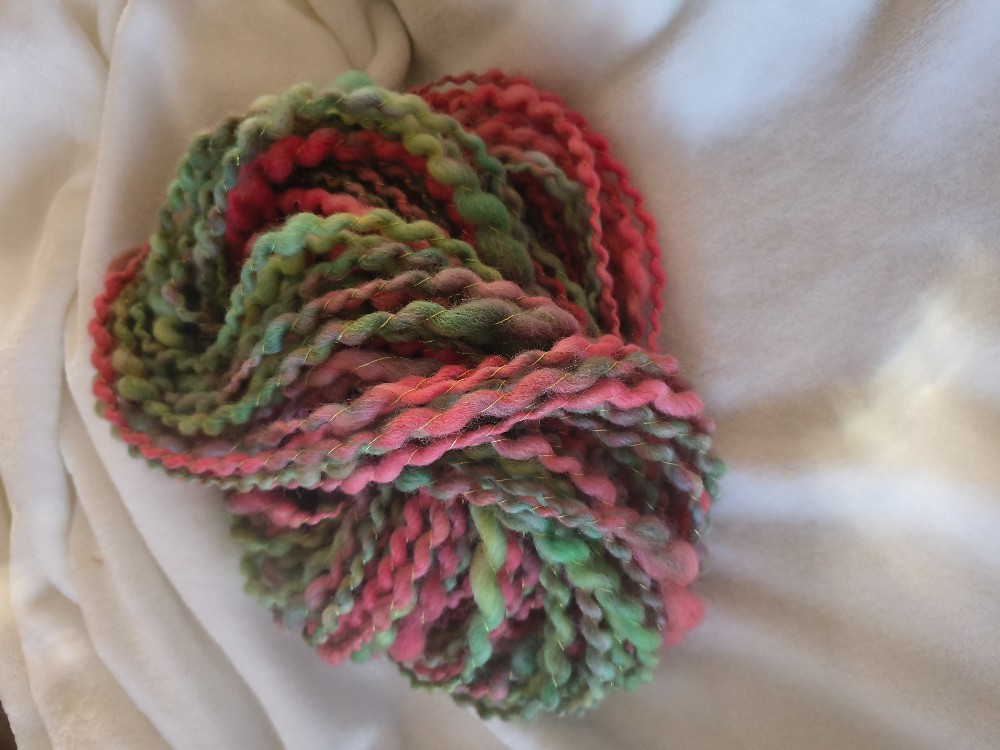 Sherbert colors, squiggle thread plyed handspun art yarn