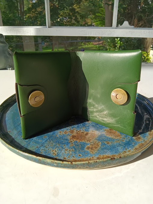 Full Grain Green Leather Multi Pocket Cardholder Wallet