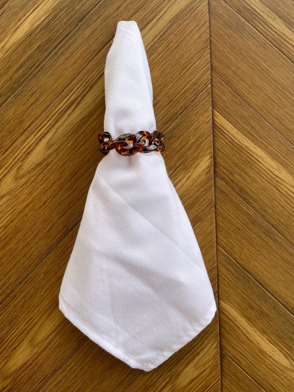 Set of 4 Tortoise shell acrylic link chain napkin rings.