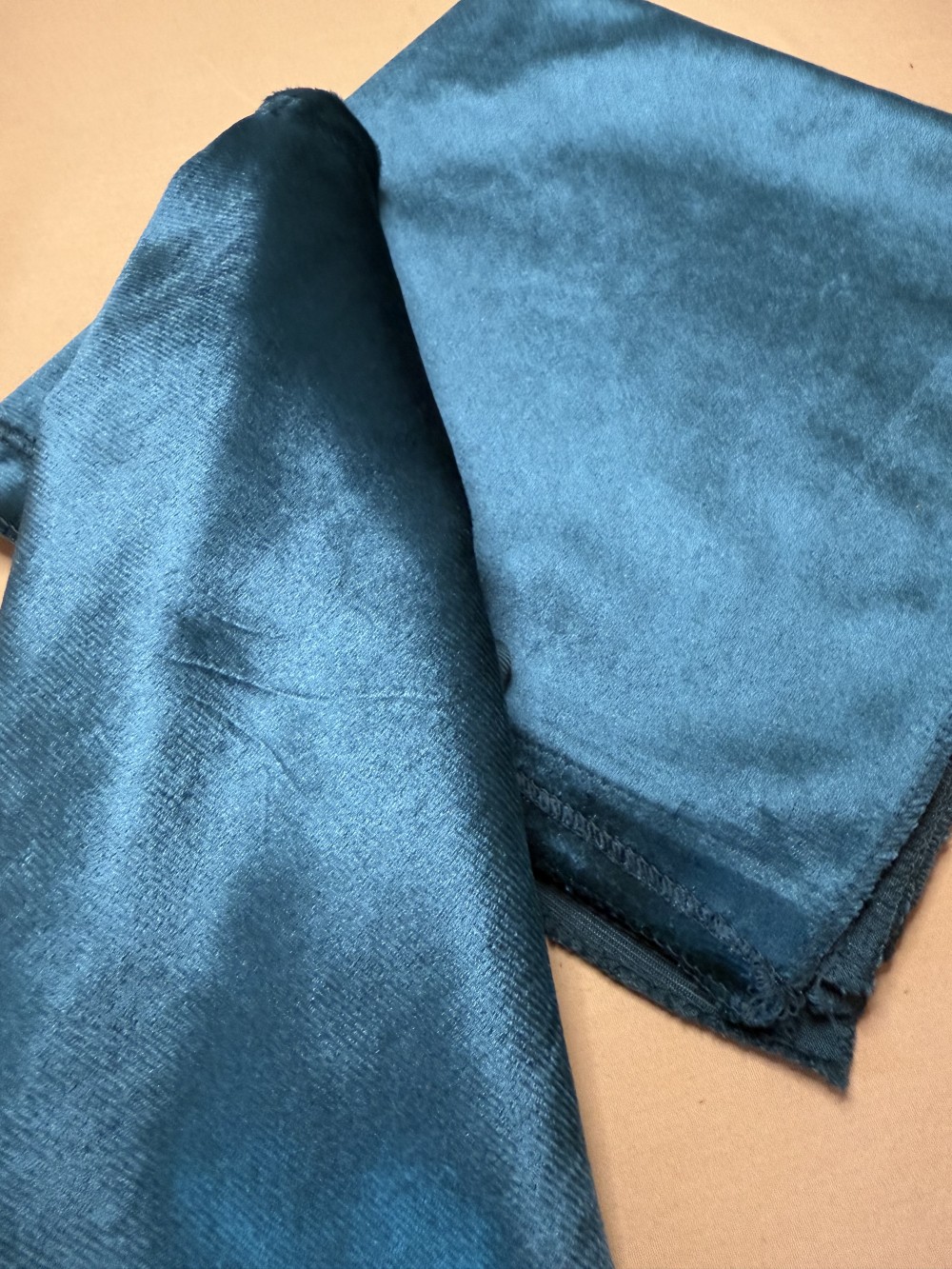 Set of 4 Teal colored poly (washable) velvet napkins. Gorgeous rich moody look for your tablescape!