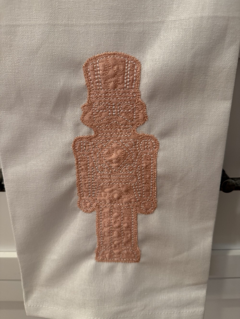 Embroidered Nutcracker in ballet slipper pink tea/kitchen towel.