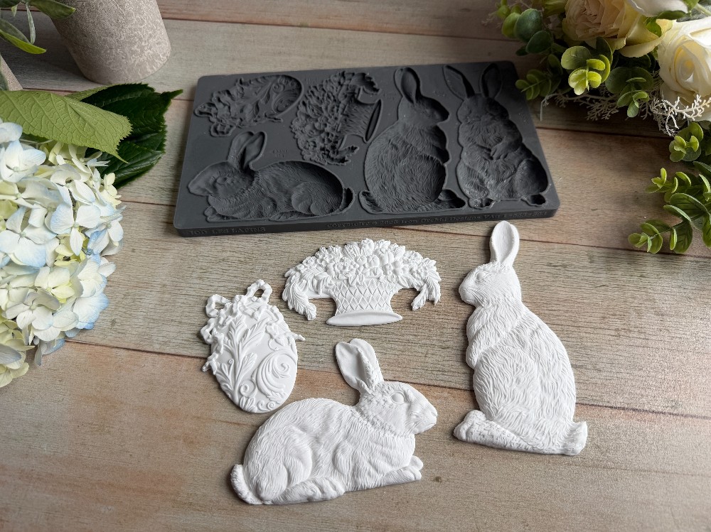 The 6x10” Les Lapin Mould is a must for any French Country cottage-style home this spring. This set brings together everything you need to create a classic Easter scene. The rabbits were designed with a traditional, statuary feel—much like the cement garden pieces found in vintage English décor—giving them a sophisticated look that works beautifully across projects.
