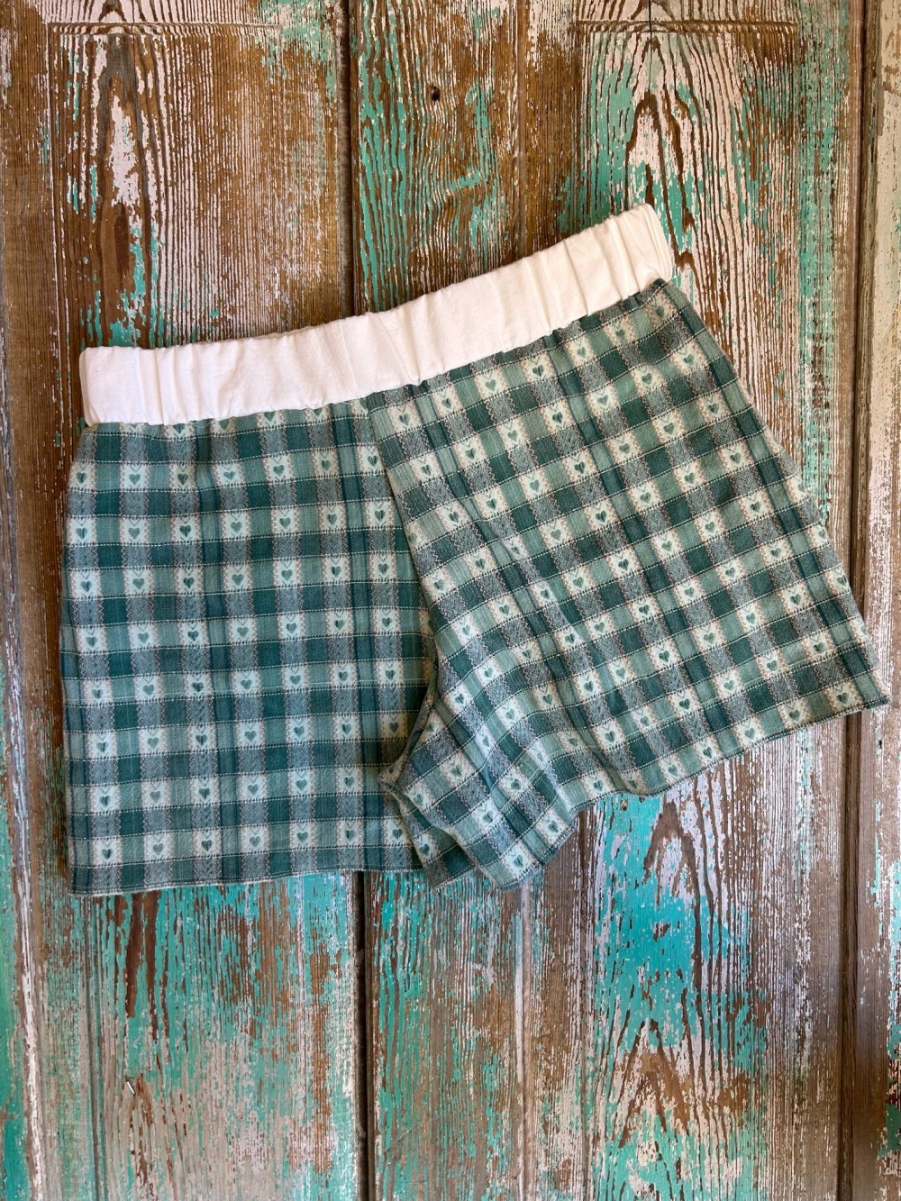 Strut your stuff with this one-of-a-kind pair of shorts! Upcycled from vintage tablecloths. Patched together by me! Elastic Waistband.