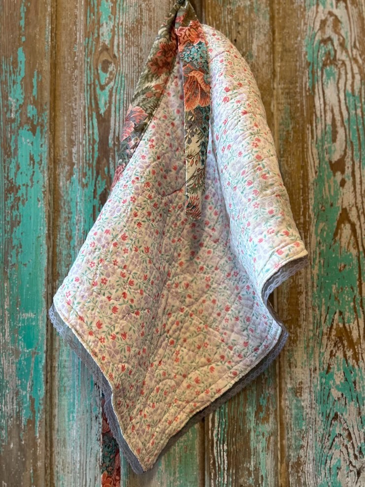 Crafted using a well-loved vintage quilt. Features waist ties as well as a pocket. Perfect for in the kitchen, garden, garage, or vendor fair! Unique, eclectic, one-of-a-kind.