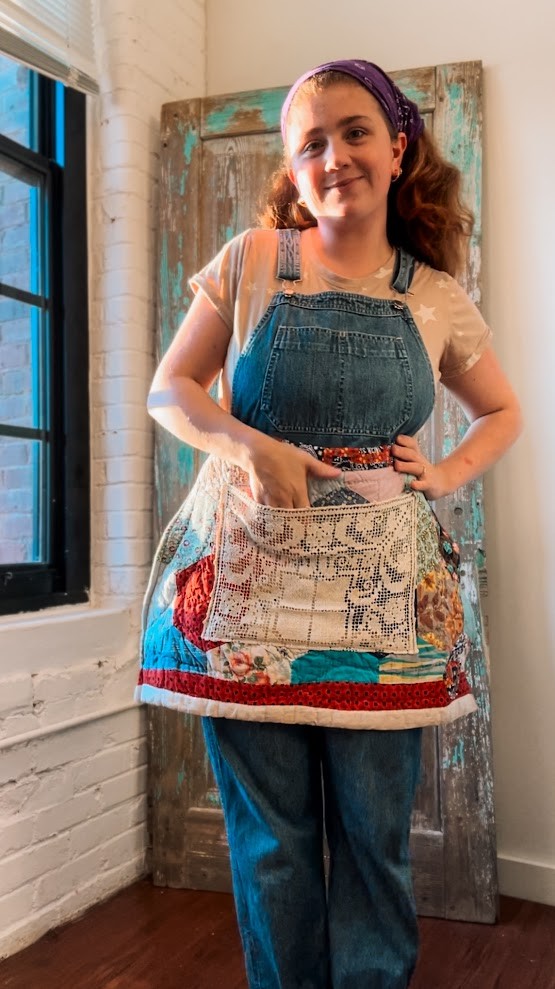 Home / Refashioned Styles / Upcycled "Bethany" Vintage Quilt Apron- Adult Short