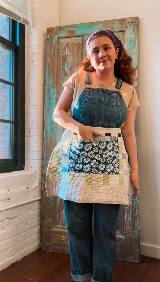 Home / Refashioned Styles / Upcycled "Daisy" Vintage Quilt Apron- Adult Short
