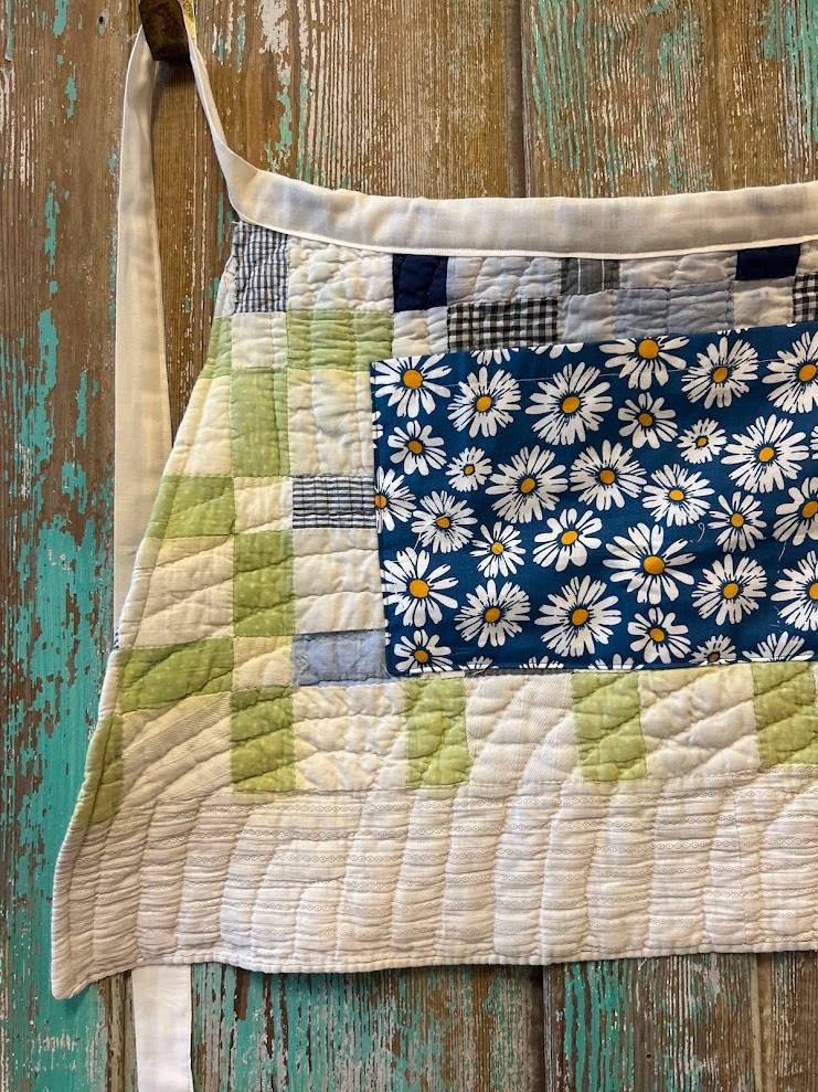 Upcycled "Daisy" Vintage Quilt Apron- Adult Short