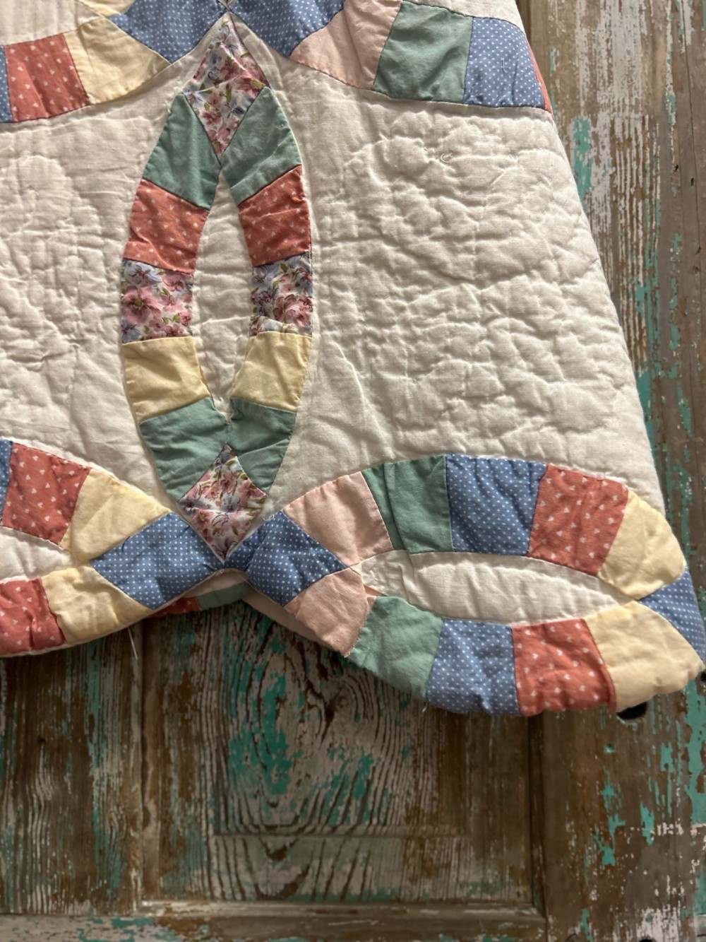 one-of-a-kind. Upcycled from a vintage wedding ring quilt. Handmade by me!