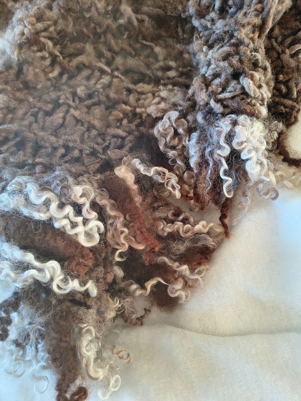 The fringe is locks from our girl Sophie and mohair from my friend Mea's farm.