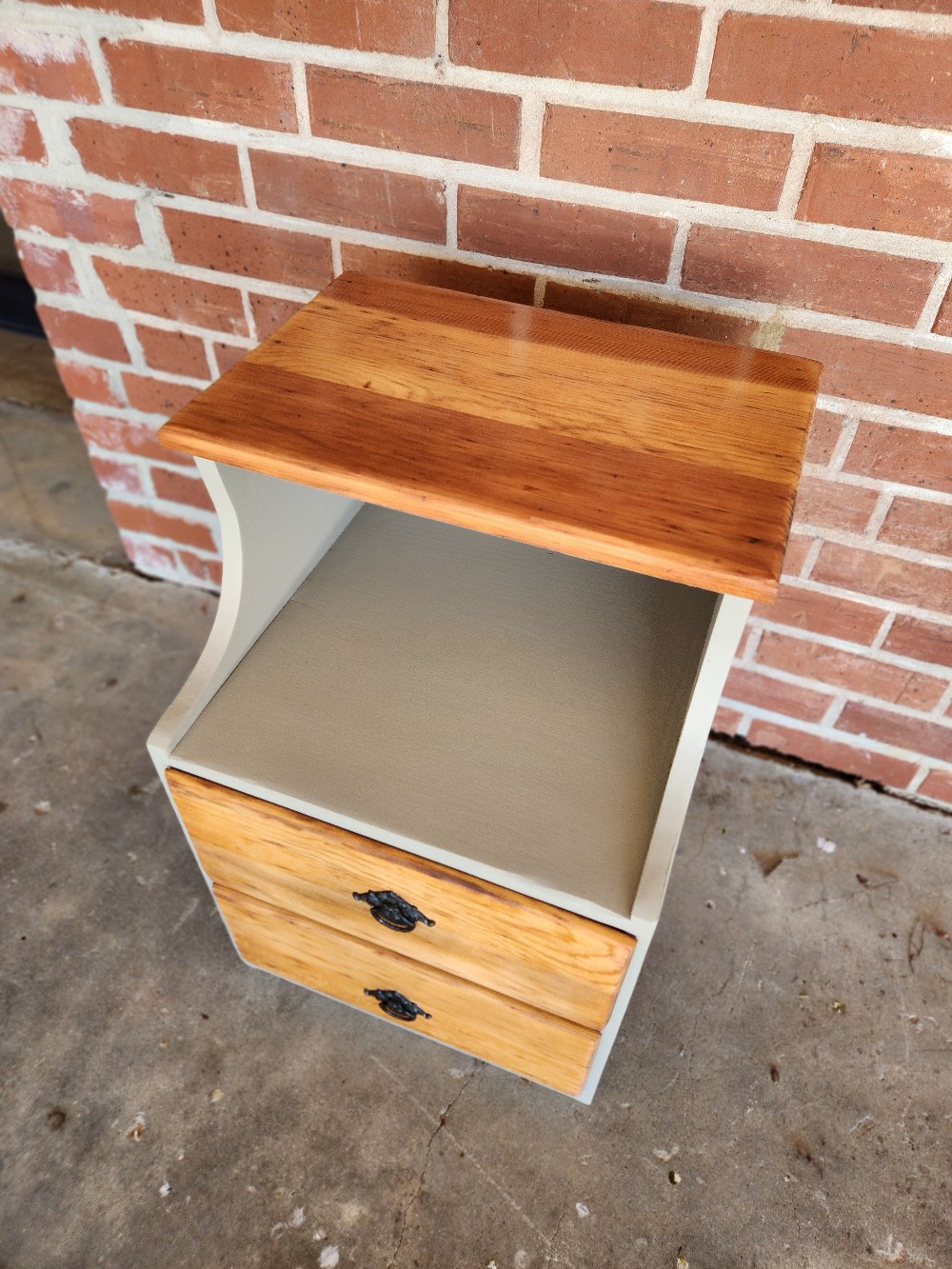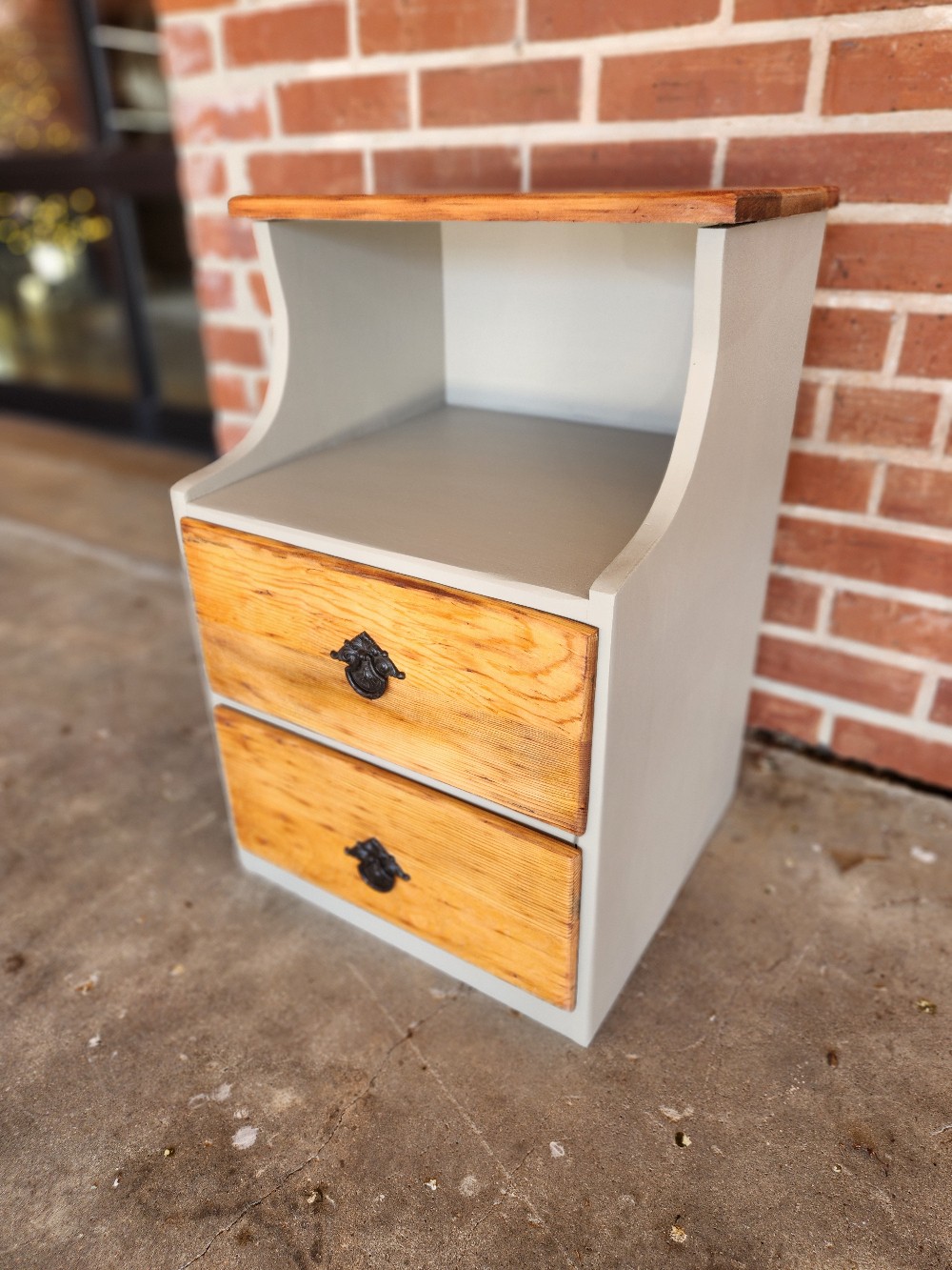 This side table has been partially painted in Fusion Mineral Paint's Tapestry and measures approximately 16 x 15.25 x 24" tall