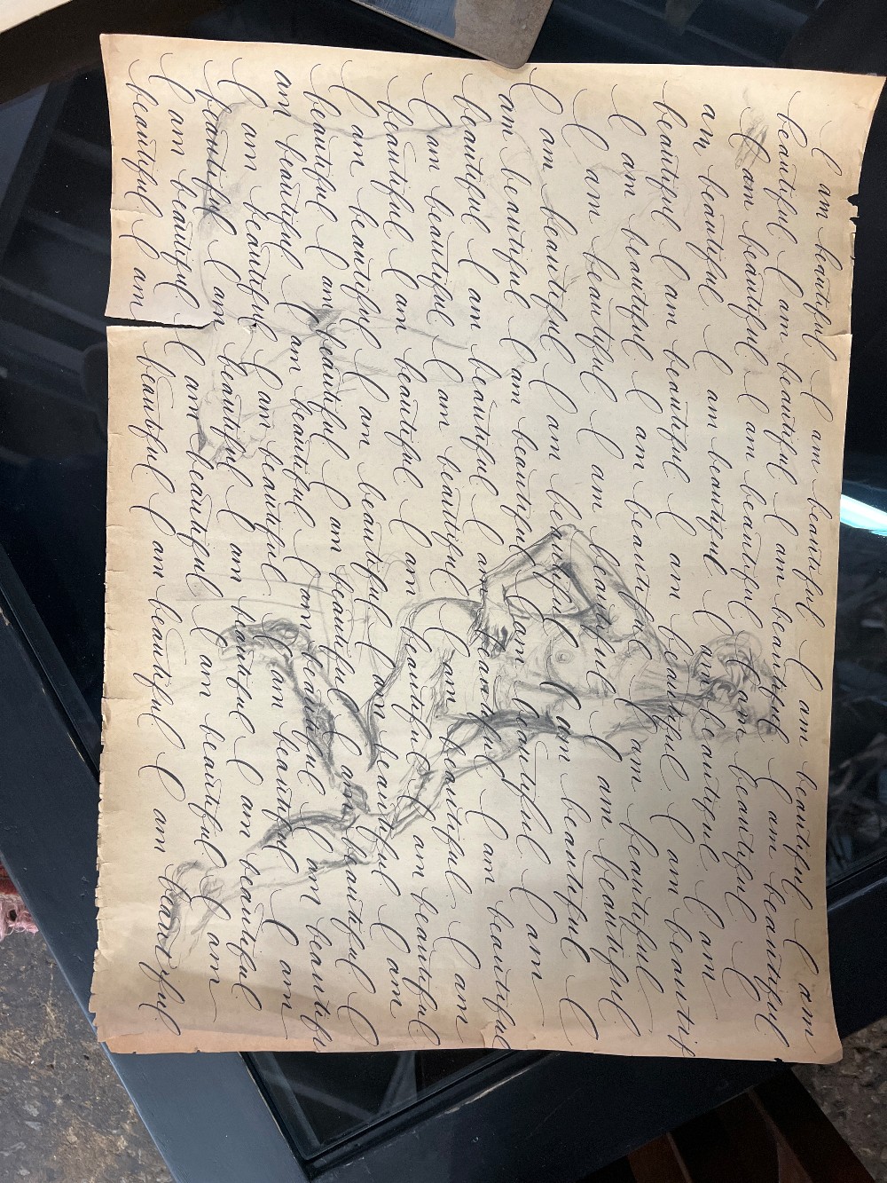 Vintage pencil drawings of women with hand written affirmations in calligraphy style