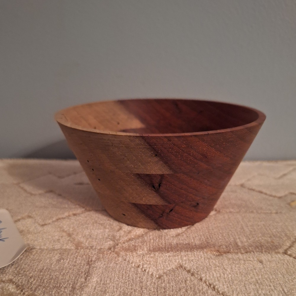 Unique two-tone bowl from African Padauk wood, rare piece that shows both heartwood and sapwood